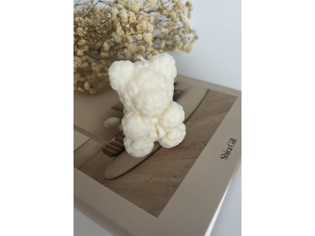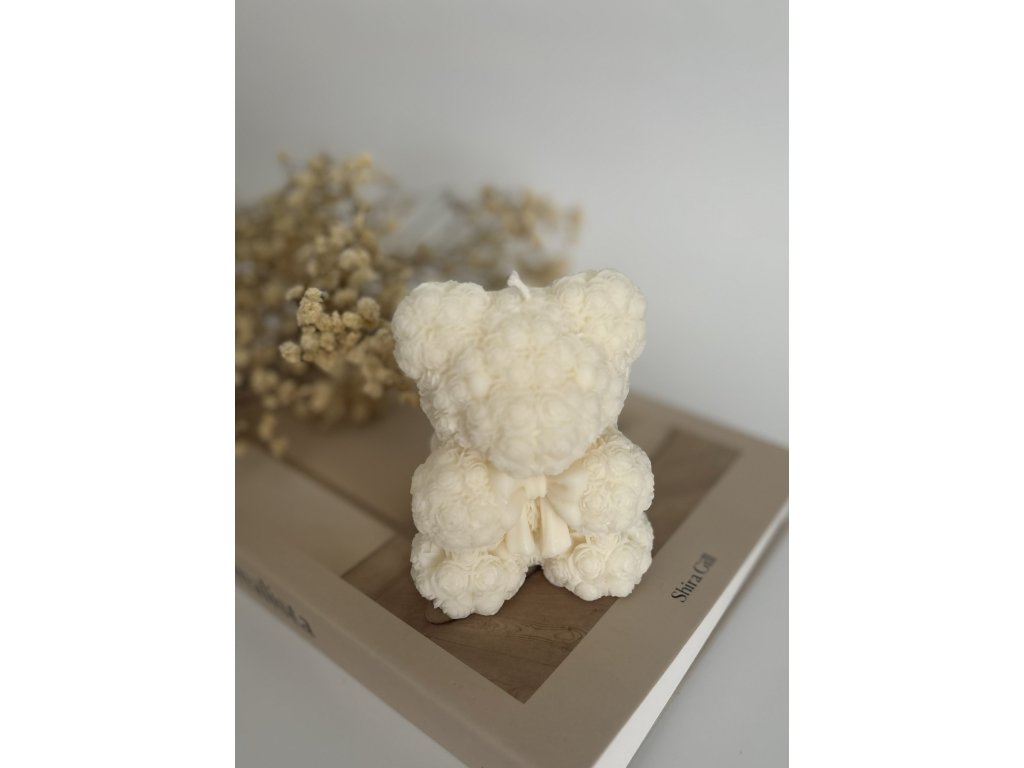 Medvídek má propracovanou strukturu s růžičkovým motivem, který mu dodává elegantní a romantický vzhled. Elegantní mašle pak podtrhuje jeho stylový design, díky čemuž je svíčka ideálním dárkem nebo krásnou dekorací do vašeho domova.